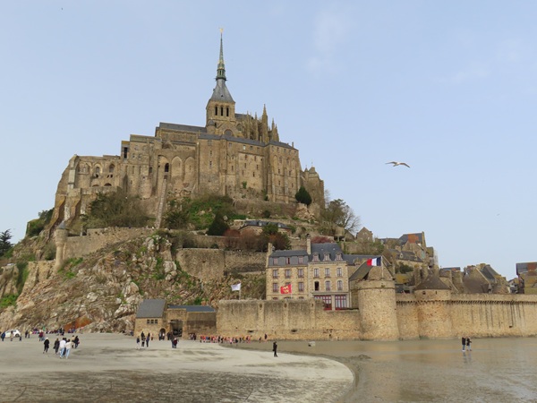聖米歇爾山(Le Mont-Saint-Michel)是此行最大的賣點,包含周圍海灣,於西元一九七九年經聯合國教科文組織(UNESCO)登錄為世界文化遺產。相傳八世紀初,阿夫朗什主教奧貝爾(Aubert of Avranches)夢到天使長(Archangel Michael)指示在岩石覆蓋的潮汐島上蓋一座教堂,主教起初不以為意,懷疑真實性,天使長兩次暗示不成,乾脆在主教頭上戳一個洞。主教逝世後,頭蓋骨上還真有被開洞的痕跡。