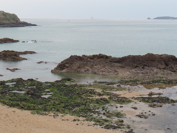 晚餐前上城牆(Bastion de la Reine)遠眺堡壘,有個雕像吸引R的目光,後來查是Robert Surcouf,法國的私掠者、商人兼奴隸販子。從城牆往下看,沿岸部分似有青苔,我覺得跟老梅綠石槽有百分之十相似。
