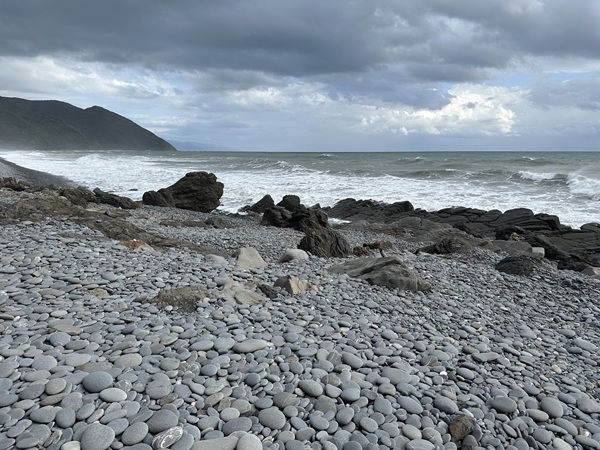 沙灘上佈滿大大小小的鵝卵石,圓滑的外型是歲月沖刷的痕跡,有的來自海岸山脈,有的來自中央山脈,可從石頭上的紋理辨別。解說員提醒,這些石頭千萬不可以帶走!否則會觸法,觸犯什麼法?「妨害風化。」解說員冷不防又說一個冷笑話。