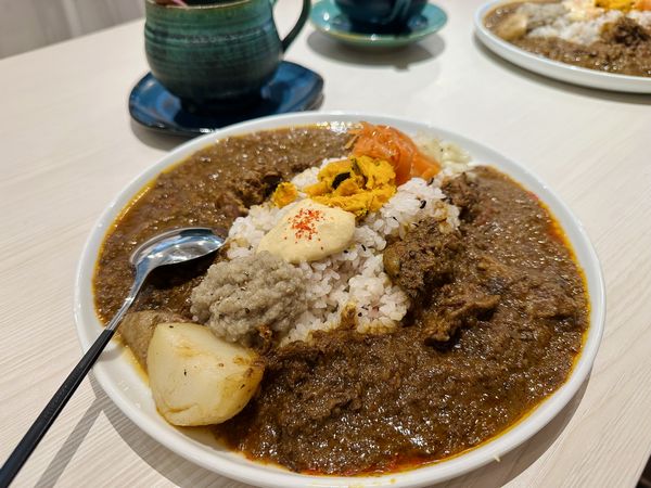 午餐在一間隱身巷弄的小店,吃很厲害的熟成辣味和牛藥膳咖哩。我們都點了套餐,先來一杯薑汁特調,讓身體暖和起來,接著醬汁滿滿的咖哩上桌,色香味俱全,越吃越辣,整盤吃完已七、八分飽,但還有飯後甜點,生雞蛋布丁!雞蛋打在小雞的頭上,藉此分離蛋白與蛋黃,然後將蛋黃與焦糖依個人口味淋在布丁上,食用時,可細細品嘗口感的層次,享受食材各自的天然風味與美妙融合。