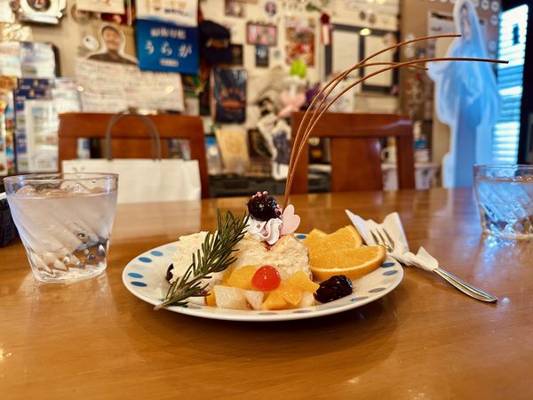 再往前走,有一間評價很高的店,我們走進去用券兌換起司蛋糕,這也是橫須賀必吃的美食。店內牆面貼滿簽名留言和艦娘周邊,一名比我們早吃完的男性客人結帳時,與老闆閒聊提及,他為了艦娘,特地從神戶搬來橫須賀住。T與我竊竊私語說道:「是真愛粉啊!」