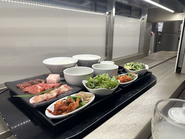 午餐在「麵包超人兒童博物館」對面吃燒肉。T很會找,換算台幣六百多元,這價位不到神戶牛排的一半,可是美味不打折扣。我點的套餐包含熟成牛舌(熟成タン)、牛肋排肉(和牛カルビ)、特選里肌(極上ロース)、醃漬橫膈膜(漬けハラミ)和伊比利豬(イベリコ豚)。店裡座無虛席,空間充分利用,餐點從座位旁的軌道滑過來,很新奇!