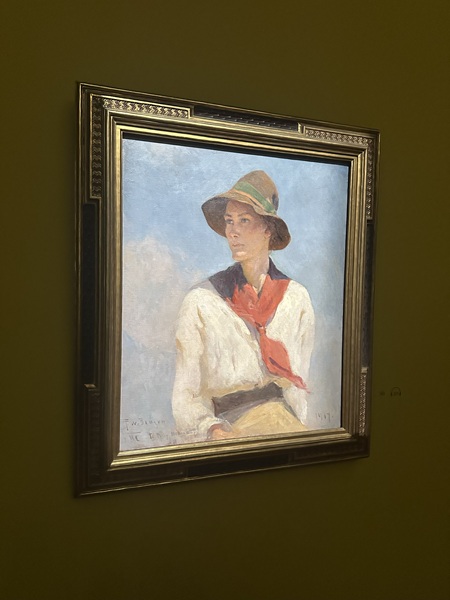 K到美術館時,我正好看到莫內的足跡年表,商量各自看完再會合。當我看到Frank Weston Benson的〈娜塔莉〉(Natalie),K也來到第五章的展區。我發覺我們逛畫展的步調可能差很多,還好K晚到,讓我自己先看!